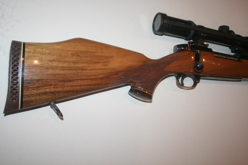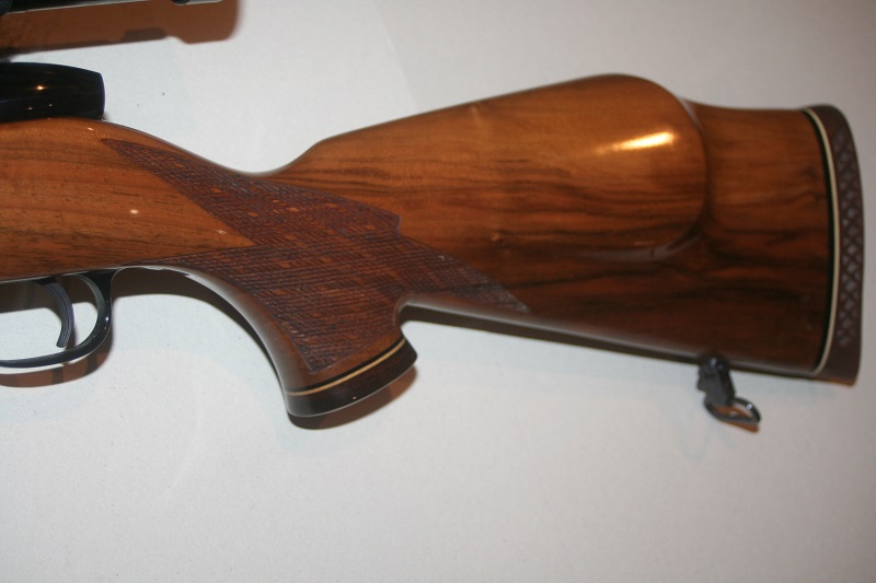 Très belle crosse en noyer premier choix verni avec quadrillage écossé.