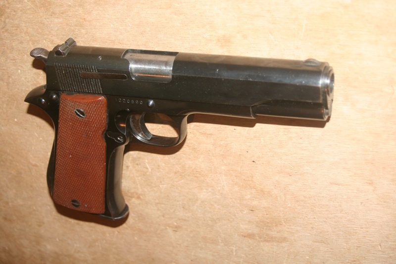 Arme très bien fabriquée et sure en acier usiné et bronzé avec plaquettes bakélite. Excellent canon pour le tir avec de bonnes rayures, bronzage bien brillant, chien jaspé, livré avec deux chargeurs sa bet sa boite carton d'origine.