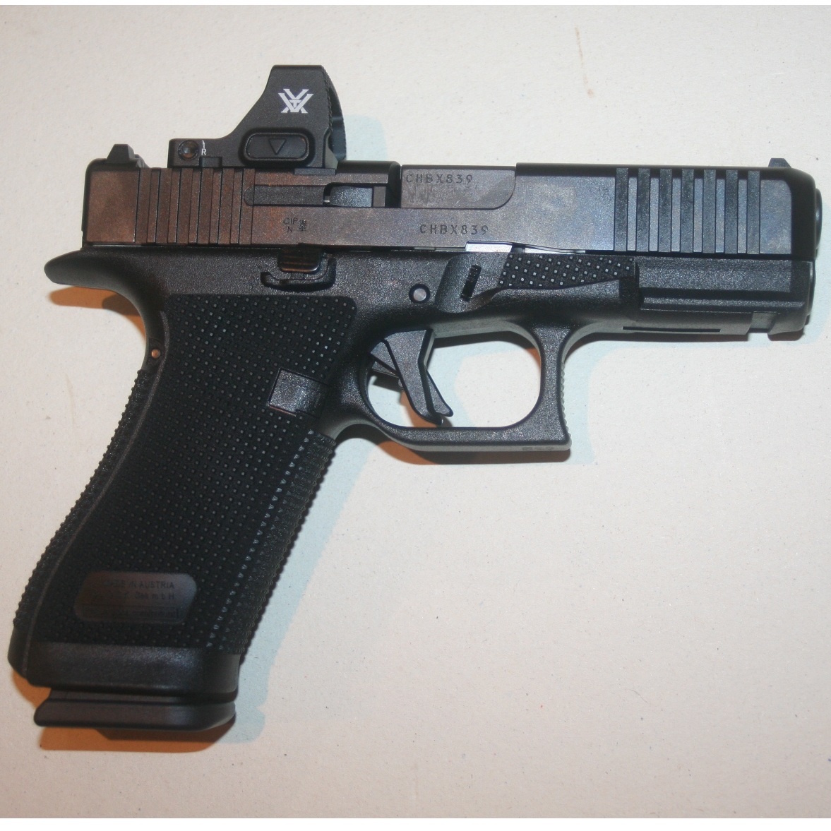 - Poids avec chargeur vide : 680g (G17), 640g (G19), 655g (G45), 660g (G49).